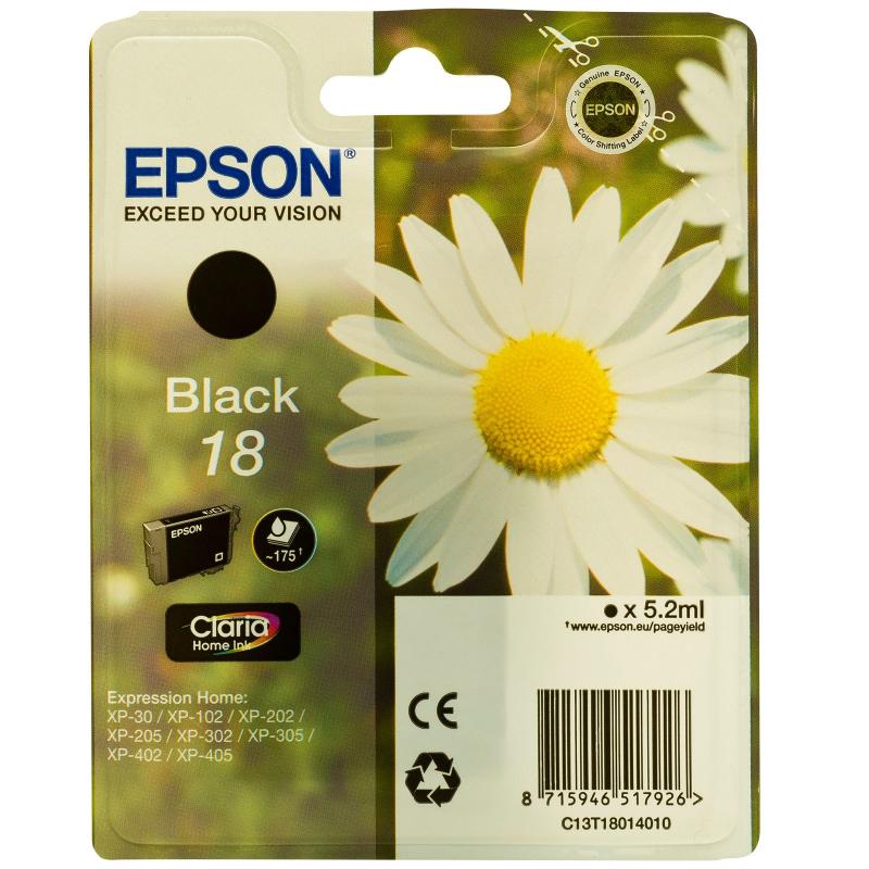 Cartouche jet d'encre noire 18 EPSON Expression home XP-30/102/212/215/305/3012/315/405/412/415 origine